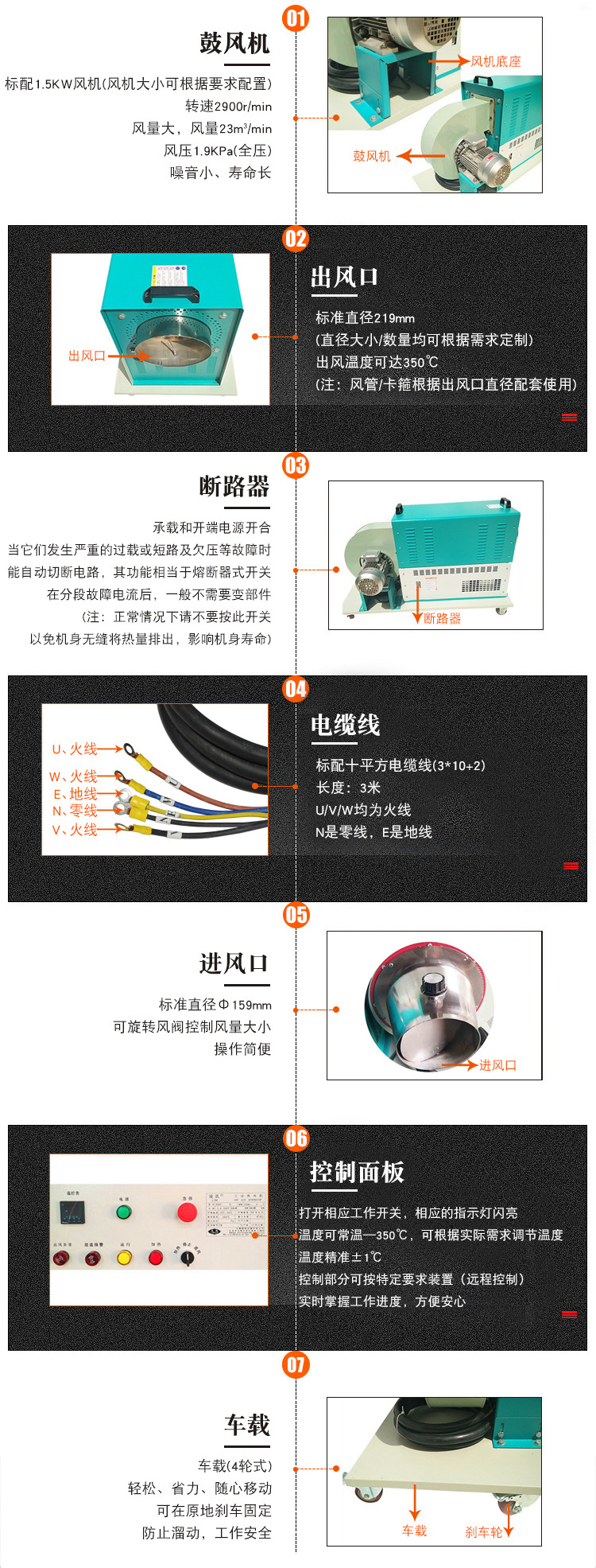 产品功能: 高温热风、热风生发、环保热源、350℃高温热风