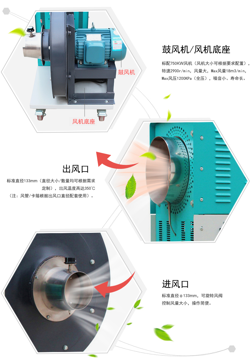 产品功能 | 高温热风、热风生发、优质环保热源、350℃高温热风 |